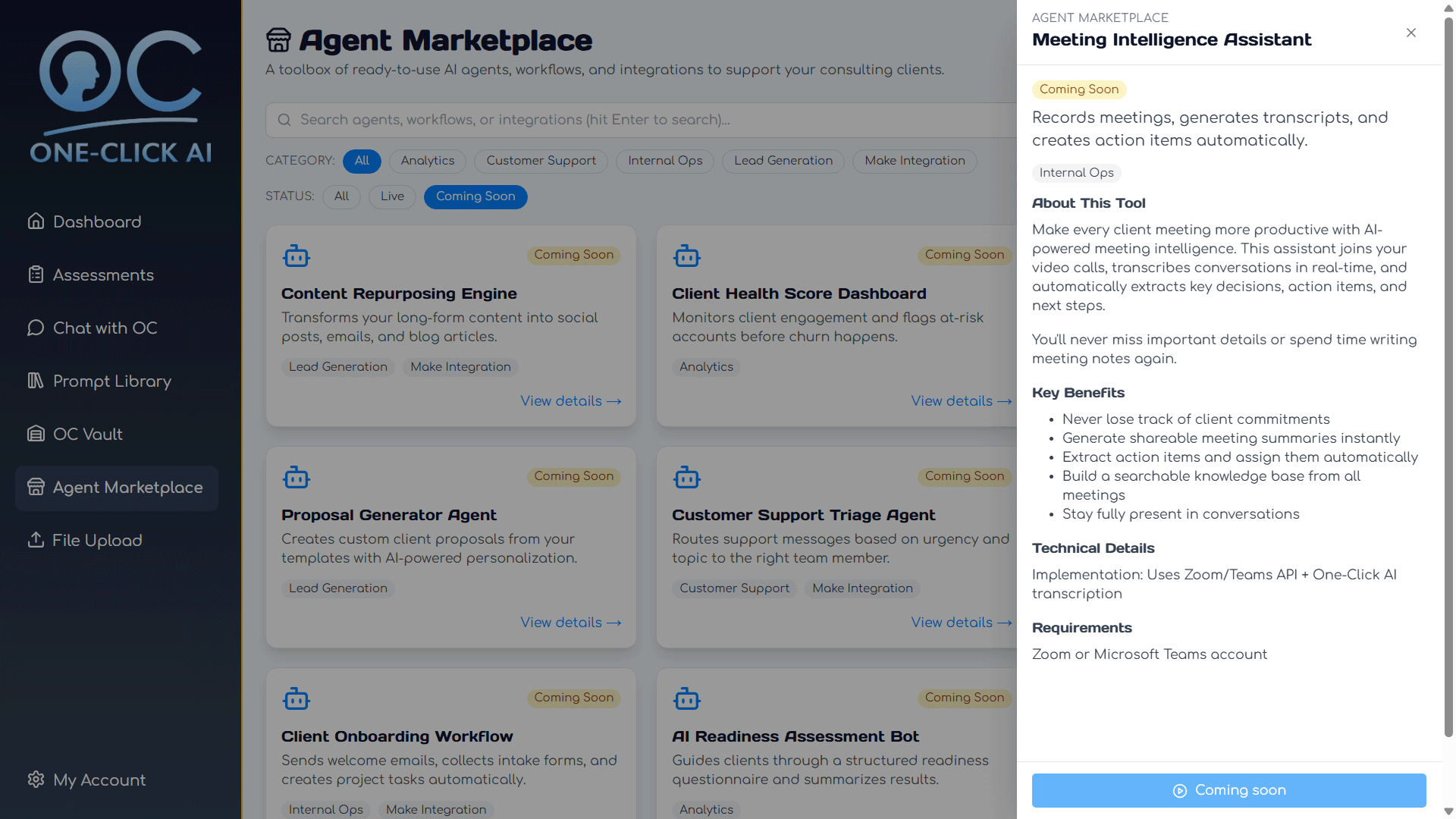 The Agent Marketplace (coming soon) will feature: