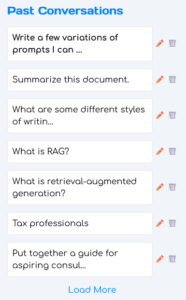Under the Past Conversations section, you can view previous OC Chat Console conversations, edit conversation names, view more, and delete conversations.